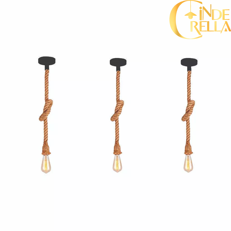 Kit 3 Pendente Luminária Vintage Corda Retro Rústico Soquete Bocal E27 Canopla De Metal Para Teto