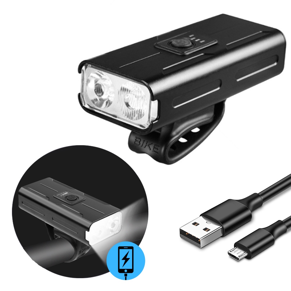 Farol De Bike Lanterna Duplo LED Aluminio C/ Power Bank USB