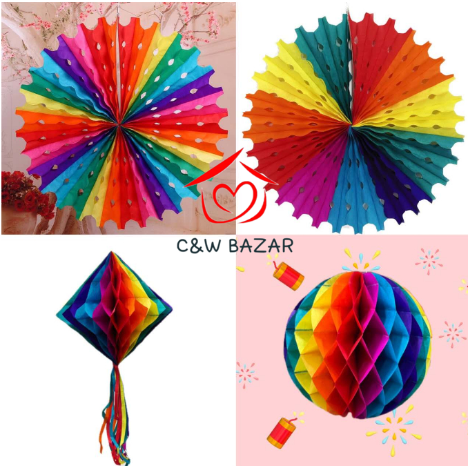 Enfeite Festa Junina Papel Várias Modelos Balão Lanterna Colmeia Colorido Com Franja Decoração 6132