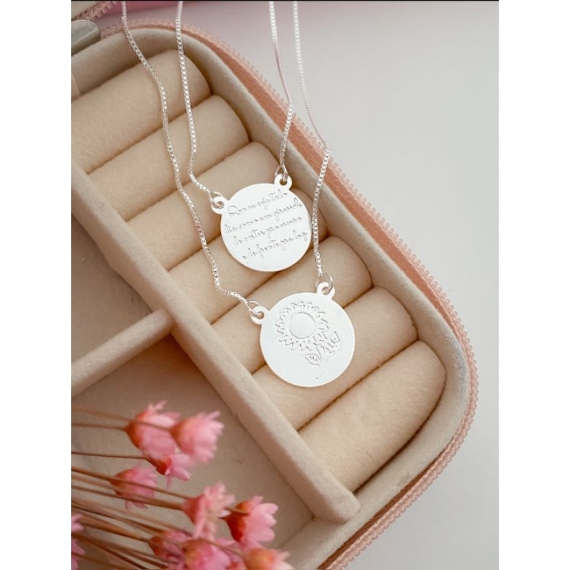 Colar Escapulário Que Eu Seja Todo Dia Como Um Girassol Banhado a Prata 925