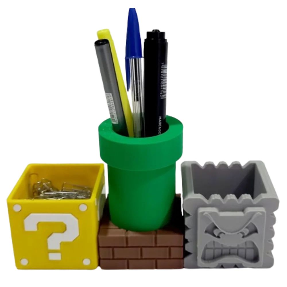 Porta Objetos Kit Super Mario Cano Bloco Pedra Mesa Escritorio Porta Canetas