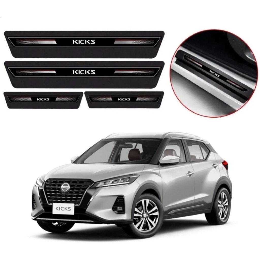 Kit 8 Peças Soleira Speed Protetor Porta Nissan Kicks 2016 2017 2018 2019 2020 2021 2022 56,5cm Preto Adesiva Anti Risco Premium Autocolante Fácil Aplicação Proteção Dianteira e Traseira