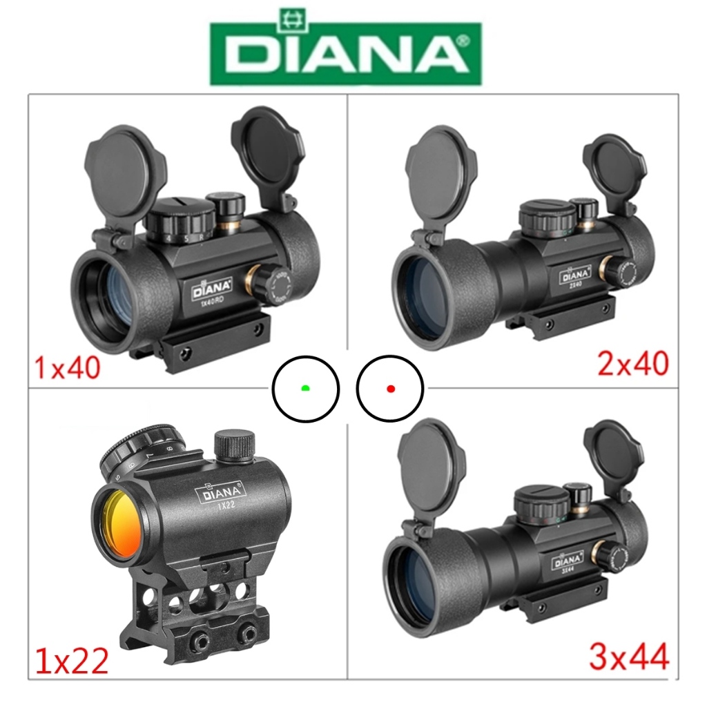 Red Dot Diana 1x40 3x44 1x22 - Trilho 11 e 20mm - Ponto vermelho e verde