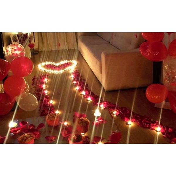 Kit Dia dos Namorados C/ 300 pétalas de rosas + 4 balões de coração + 6 velas | Surpresa romântica
