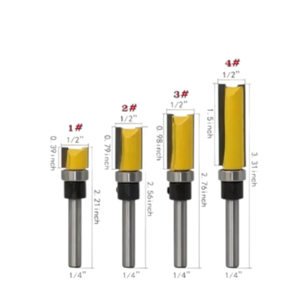 Kit 4 Fresas Reta Paralelas Rolamentadas (haste 1/4 / 6,35m)