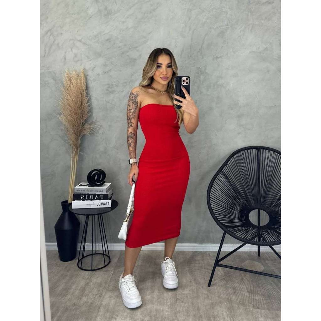 Kit 2 Vestido Tomara que Caia Canelado Midi com Fenda - Elegância e Ousadia