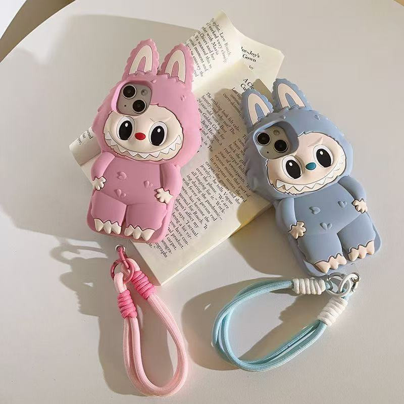 3D Dos Desenhos Animados Labububu Monstro Macio Silicone Caso De Telefone Para iPhone 16 15 14 Plus 13 12 11 Pro Max