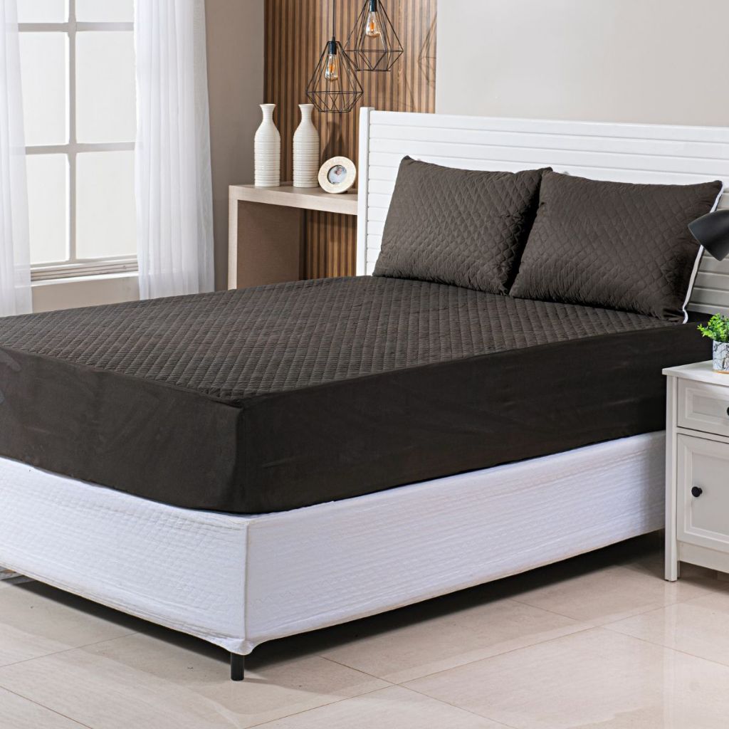 Kit Capa Protetor de Colchão Impermeável Matelado + Saia Box Matelado com Viés + Porta Travesseiro para Cama Box Solteiro, Casal, Queen, King Envio Imediato