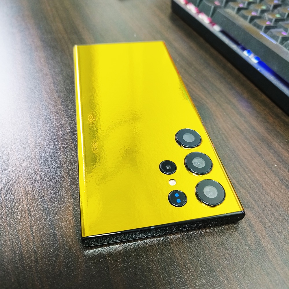 Revestimento Gold Skin Para Samsung Galaxy S23 S22 S21 S20 Ultra S10 S9 S8 Plus Espelho Decalque Pele Protetor De Tela Traseira Filme PVC Brilhante Adesivo