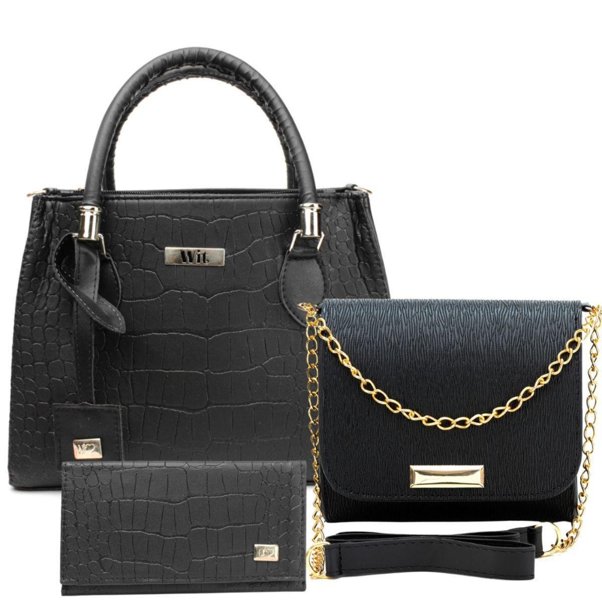 Bolsa Feminina Kit 3 peças Bolsa Transversal Estruturada + Carteira + Bolsa Pequena Transversal