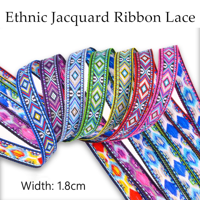 【 10 Yards 】 Ethnic Bordados Vintage Jacquard Lace Trim Ribbon Garment Suprimentos Para Vestuário De Bricolagem Decoração Acessórios Costura 2,5cm