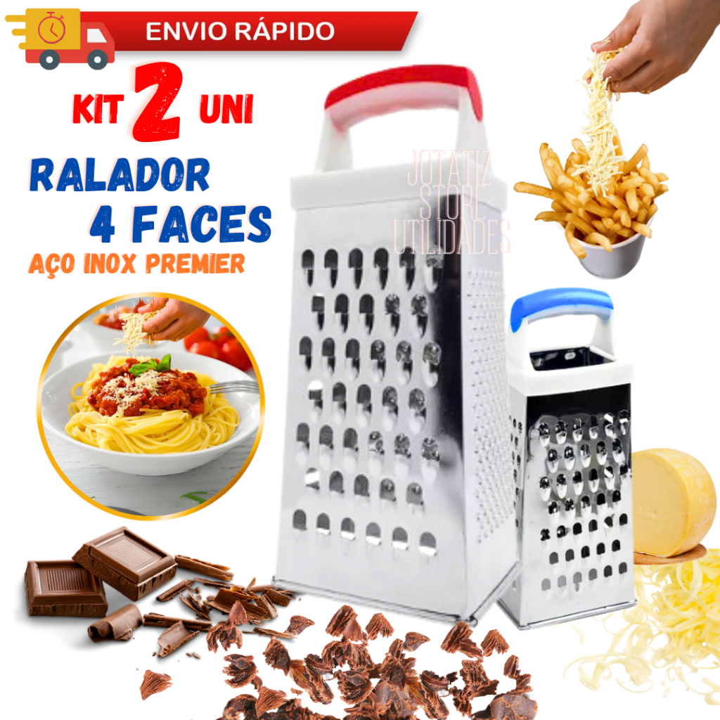 KIT 2 RALADOR FATIADOR 4 FACES CABO INOX ALIMENTOS LEGUMES QUEIJO SALAME LIMÃO PARA COZINHA GOURMET