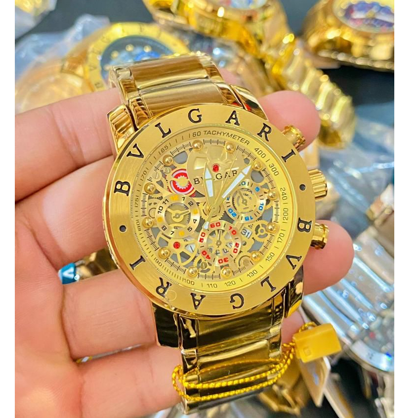 Relógio Bvlg. Cassino Giratorio Speed Way Ventilador Dourado Banhado Á Ouro Luxo Pesado Grande Homem Masculino Aço Inoxidável