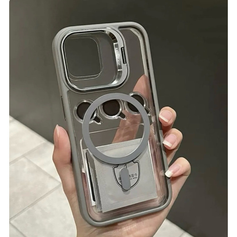 Capinha Capa Premium MAGSAFE Com Tampa Suporte Oca na Câmera e Kit de Lente Proteção de Câmera iPhone 11 12 13 14 15 Pro Max Plus ProMax Mais Resistente De Alta Qualidade Com Revestimento de Silicone Reforçado Acrílico