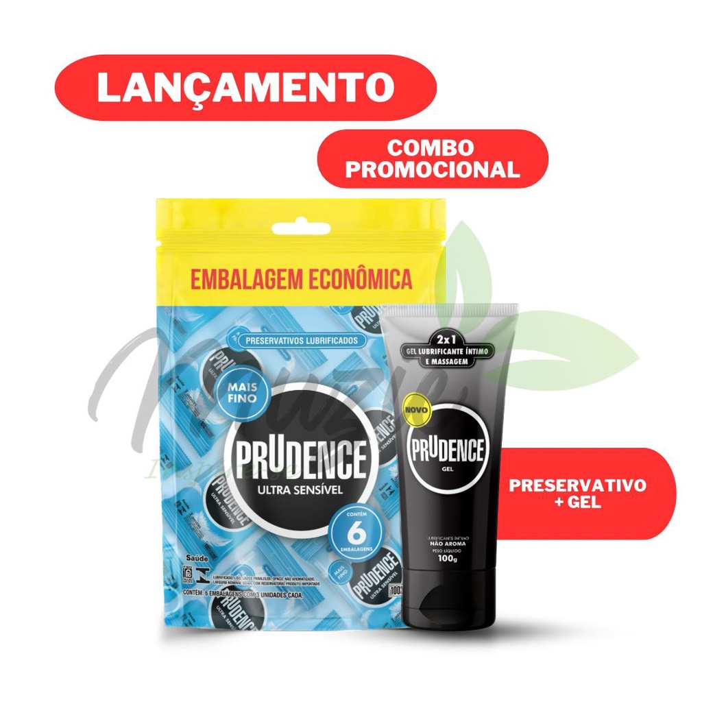 Kit Preservativo Prudence Ultra Sensível Embalagem Econômica 18 unidades LANÇAMENTO + Gel Lubrificante Sem Aroma 100g Pr