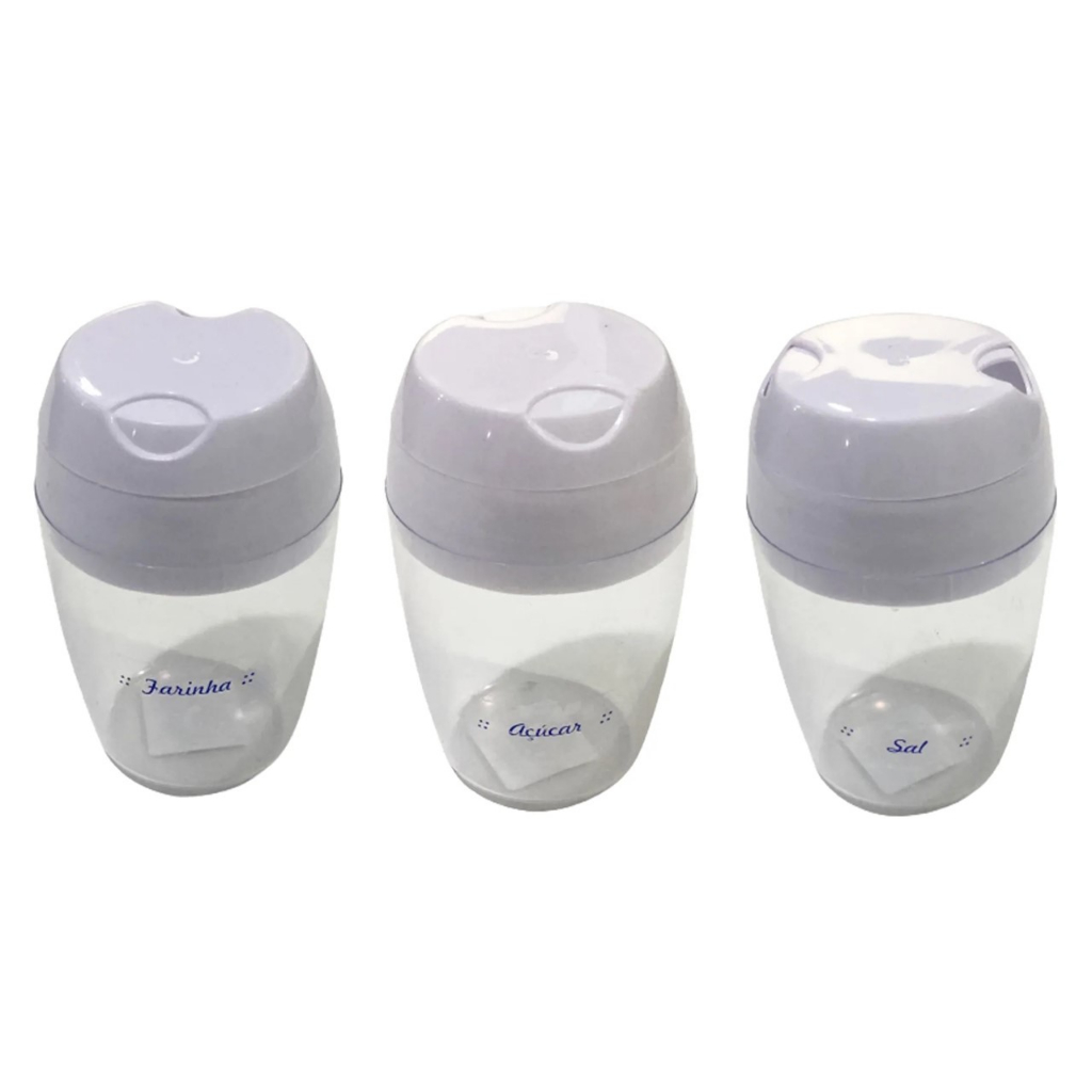Kit saleiro açucareiro farinheiro 320 ml porta condimentos plástico PS 3 potes