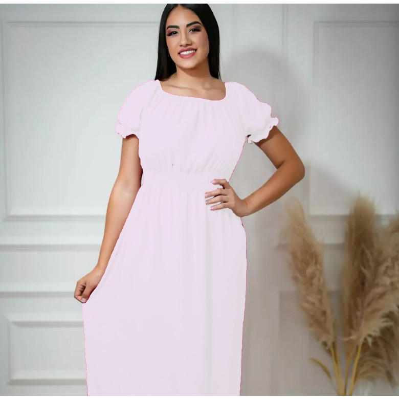 Vestido Pipoquinha Branco longo Natal Natalina Ano Novo moda feminina tecido duna pipoca manga princesa estica veste até plus size EXG Natal Natalina Ano Novo