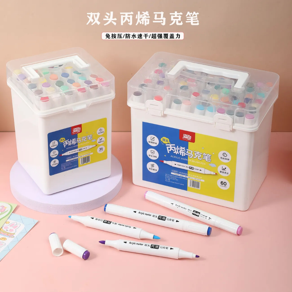24/36/48 Cor Marcador Acrílico de Duas Cabeças À Prova D 'Água DIY Estudante Artesanato Pintura Conjunto Caneta
