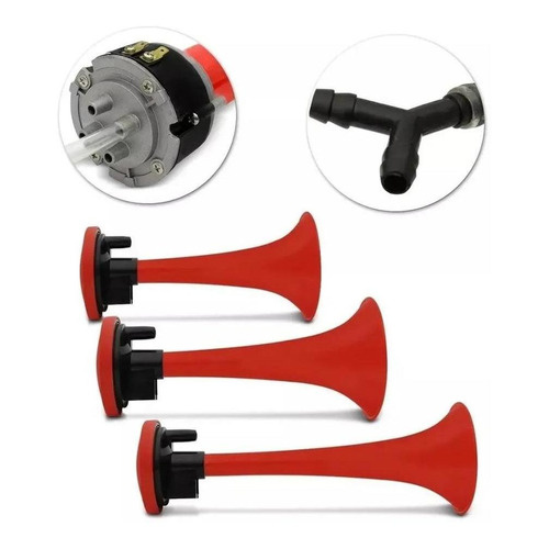Buzina Ar Pneumática 3 Cornetas Ar Comprimido Verdureiro Com Compressor Vermelha Universal