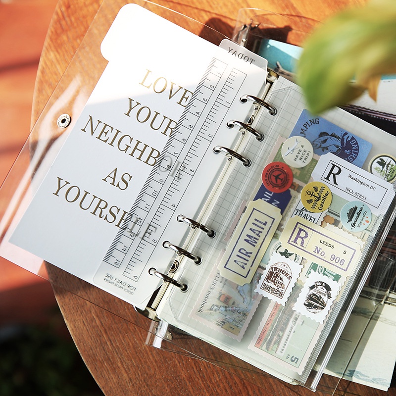 10pcs A5/A6/A7 Binder Orçamento PU Planejador De Couro Bolso 6 Furos Notebook Bills Manual Papelaria Saco Transparente