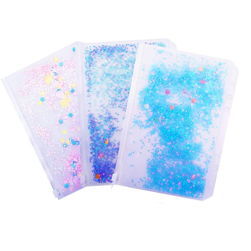 A5 / A6 6 Buracos Fichário Envelope De Plástico Com Zíper E Fecho De Bolsa Para Decoração De 6 Camadas / Com Glitter / Decoração De Estrelas
