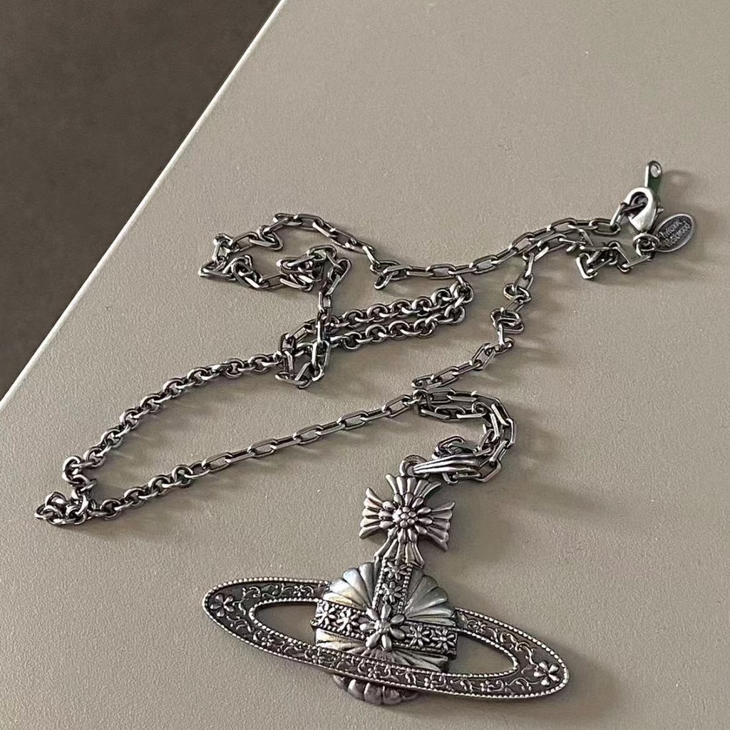 Vivienne Westwood Colar Estilo Antigo Saturno De Alto Sentido Design De Interesse Especial Sweet Cool Black De Casal Simples Personalizado Sweater Chain