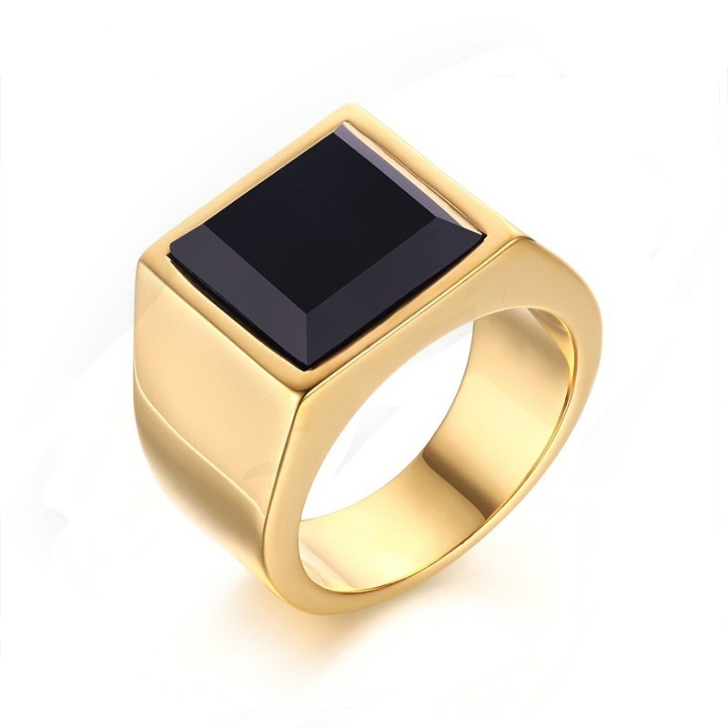Anel De Festa Quadrado De Pedra Preta De Ouro Liga Para Homens