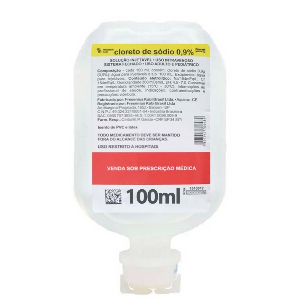 Kit 10 Uni Solução Fisiológica Cloreto de Sódio 0.9% 100ml Soro FRASCO / Sistema fechado