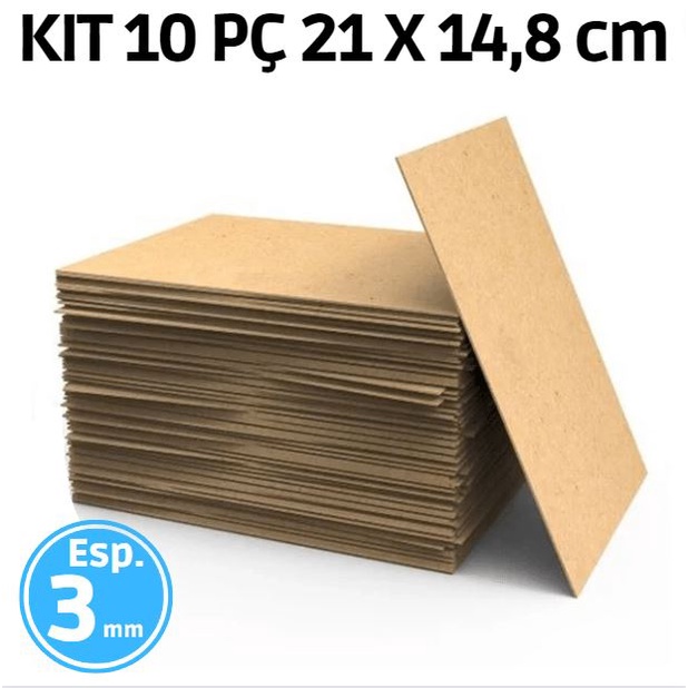 KIT 10 Placa Chapa MDF Cru 3mm A5 21x14,8 cm Artesanato