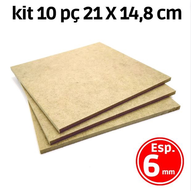 KIT 10 Placa Chapa MDF Cru 6mm A5 21x14,8 cm Artesanato