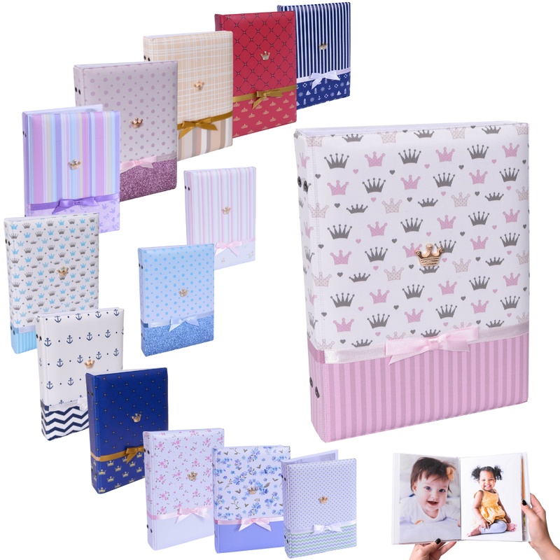Álbum de fotos 15x21 LUXO COROA 100 fotos Laço Príncipe Princesa Bebê Infantil Newborn