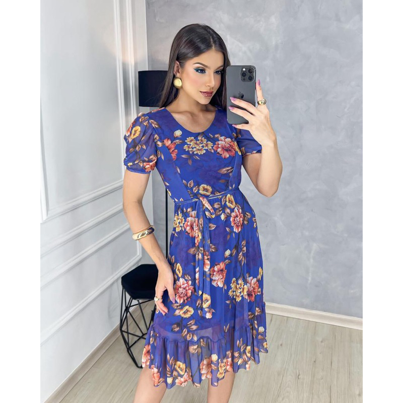 Vestido Midi Tule Estampado Moda Feminina Floral