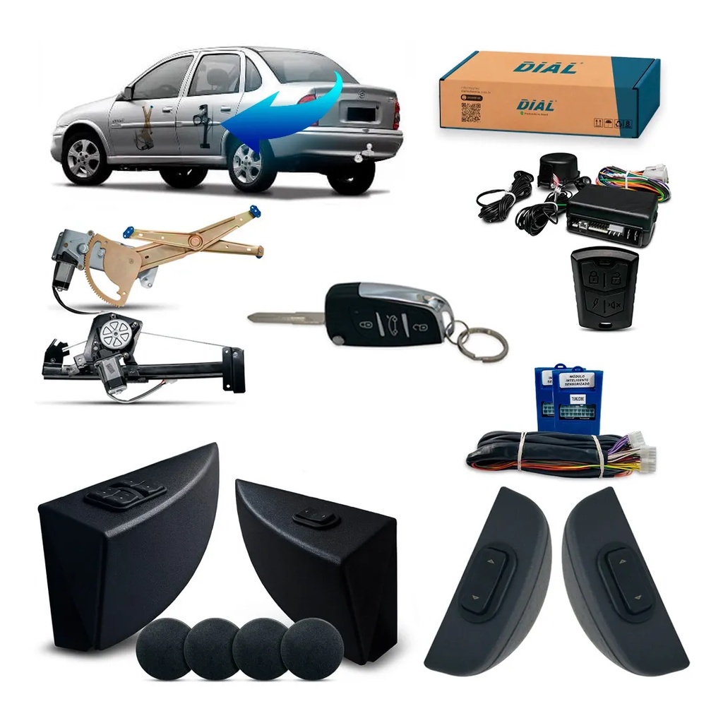 Kit Vidro Elétrico + Alarme Classic Corsa Super Corsa Sedan Wagon 4 Portas Traseiro Inteligente (1996-2016)