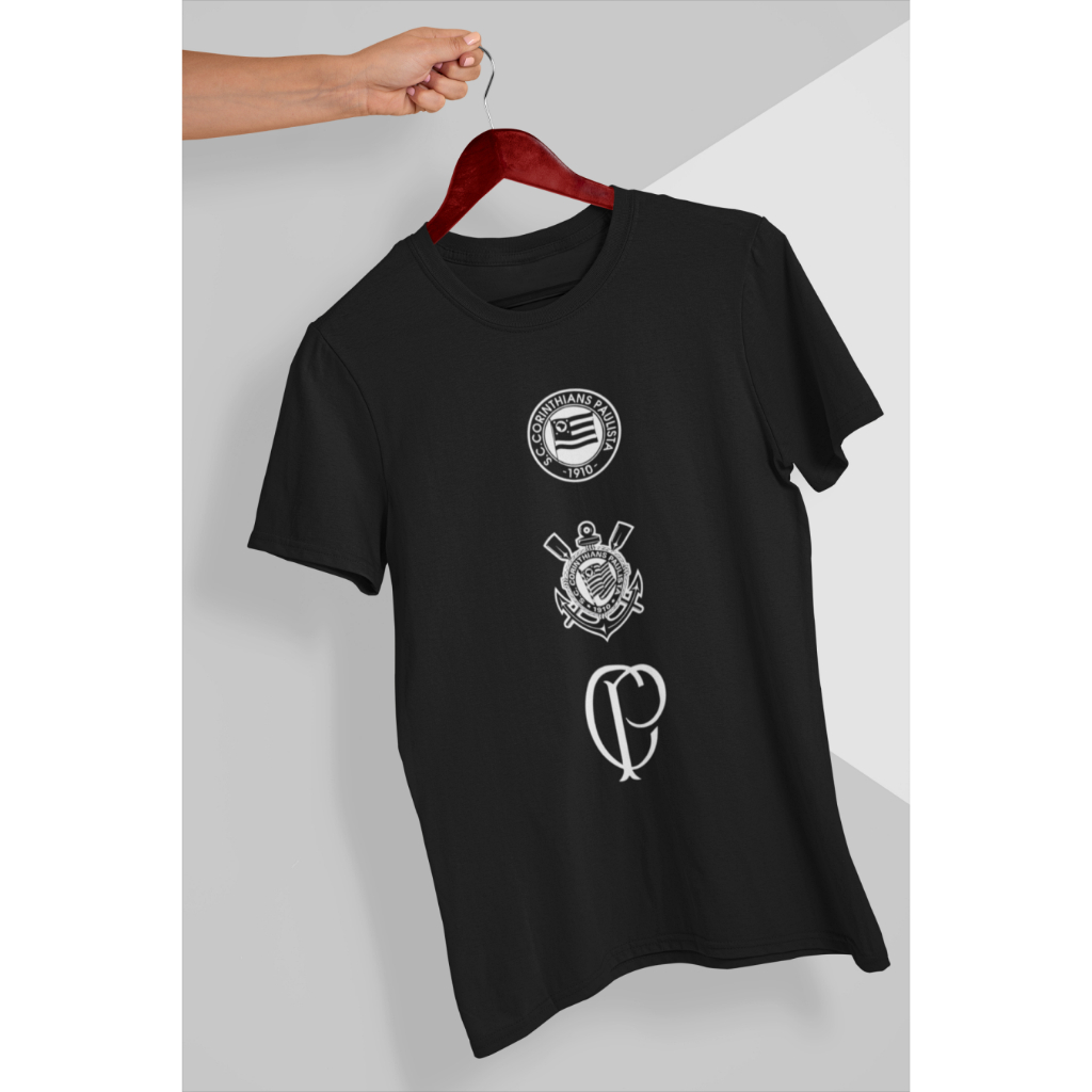 Camisetas SCCP Emblemas e escudos Futebol Masculino Tim@o Brasileirão Fiel Torcida Bando de Loucos Corinthi@ns Paulista 100% Algodão Varias Cores Alta Qualidade Plus Size