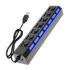Hub Adaptador USB 2.0 7 Portas Multi Plug and Play HD Extensor Pen Drive Mouse Teclado Acessórios com Interruptor Liga Desliga LED Auxiliar Multiplicador