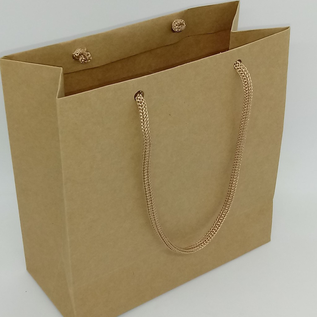 Sacolas Papel Kraft 125 gr. = 16 x 16 x 7 Sem ilhós com Alça Cordão Poliamida kit com 100 unidades