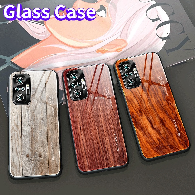 Caixa De Vidro Temperado De Madeira Para Telefone Xiaomi Redmi Note10 Note 10 11 Pro 10S 11S 10C À Prova De Choque Redmi10C Redmi10 2022 Dura Resistente A Arranhões