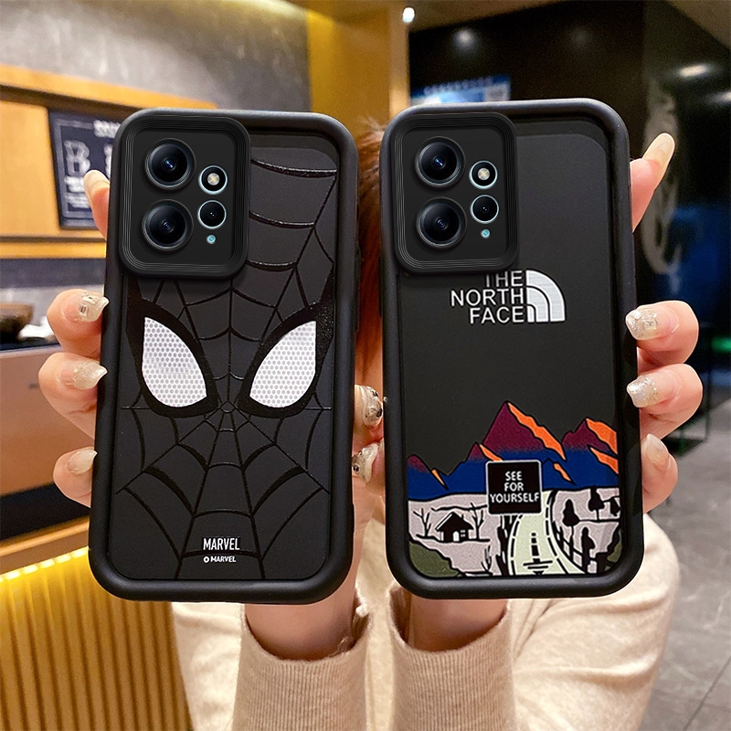 3d Border Spiderman North Face Cartoon Caixa Para Xiaomi Redmi Note 12 Pro 11 11S 10 10S Mi Poco X5 À Prova De Choque Capa De Telefone Macia de borda reta
