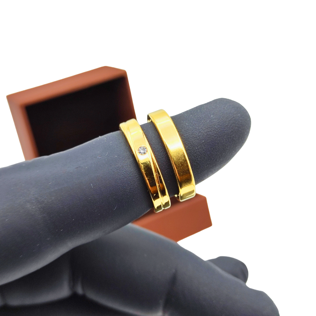 Par de Alianças de casamento de ouro Anel de noivado de aço inoxidável para mulheres com caixinha