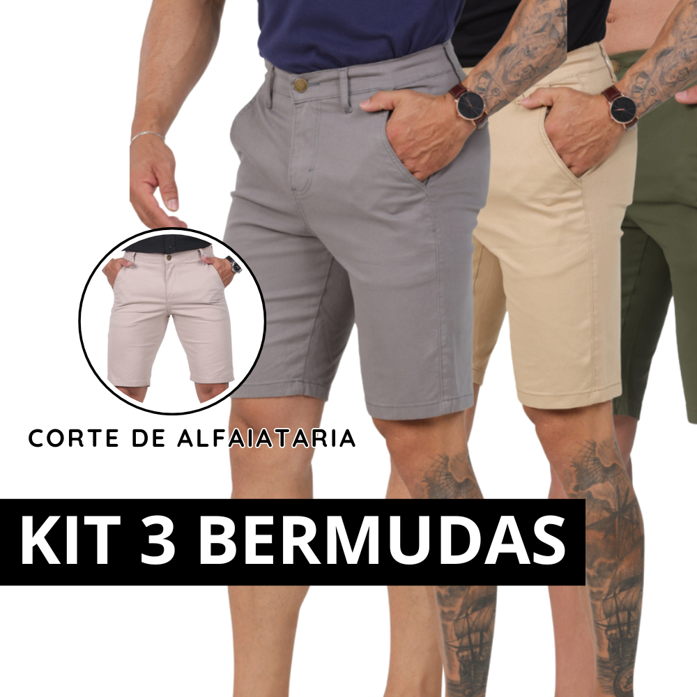 4. Kit com 3 Bermudas Sarja Esporte Fino Short Brim Bolso Embutido Social