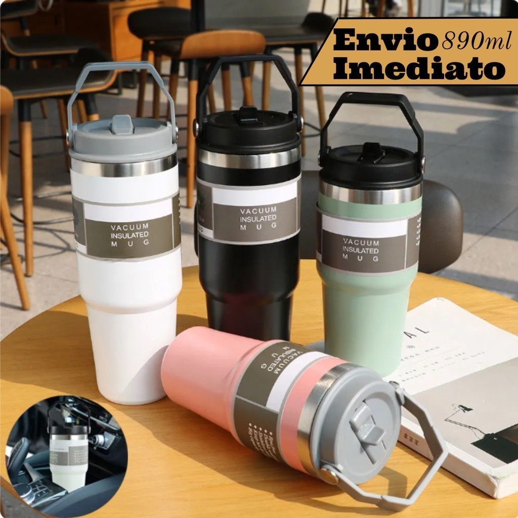 Garrafa Térmica 900ML Com Alça Flip Tumbl Aço Inoxidável Isolamento Térmico Com