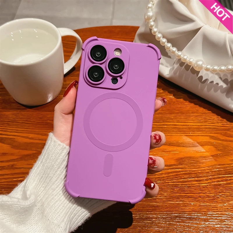 Capa macia à prova de choque de silicone para iPhone 14 13 12 pro max 14 plus para carregamento sem fio de segurança mágica Capa de proteção de lente fosca