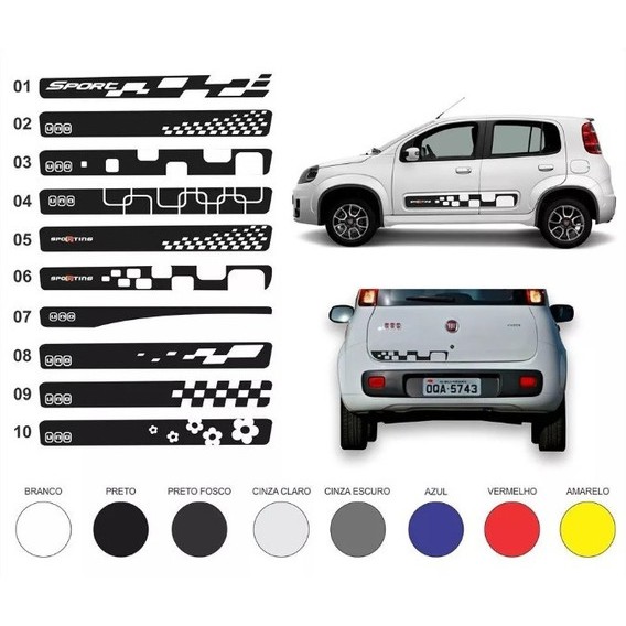 Kit Adesivos Faixas Laterais Traseira Novo Uno Vivace Sporting Attractive Drive Fiat
