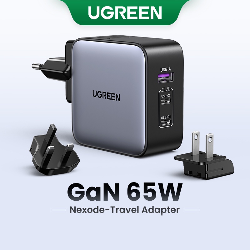 Ugreen GaN 65W Portas Duplas Carregador Rápido De Viagem Para Macbook Tablet iPhone 14 13 12