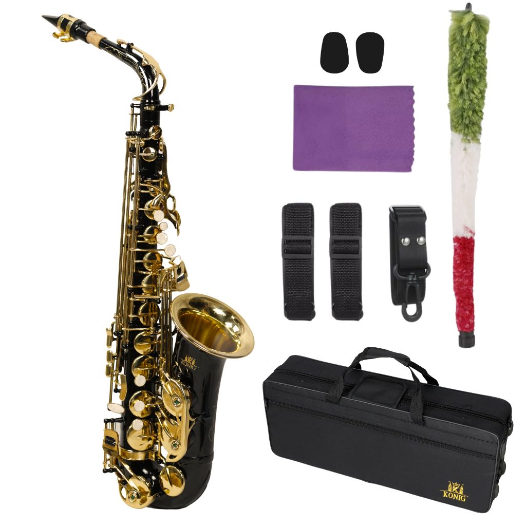 Sax Alto Saxofone Konig Preto Com Campana Dourada C/ Estojo Completo Haste Dupla