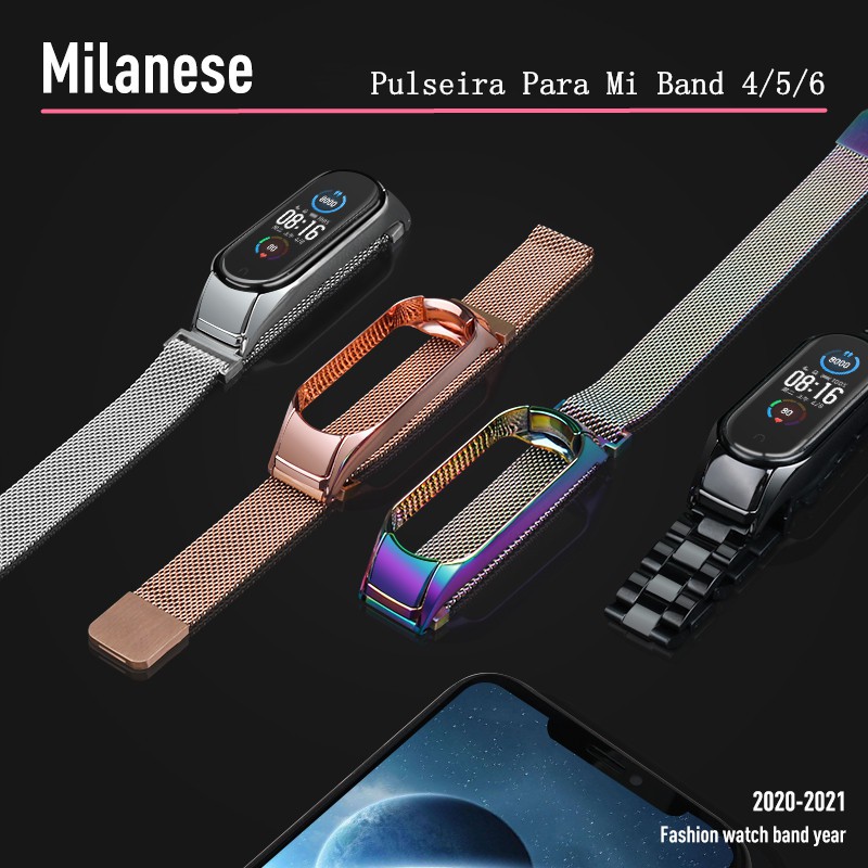 Pulseira De Aço Magnética Para XiaoMi Mi Band 4/5/6/Pulseira De Metal Milanesa Marca Verde Oringinal