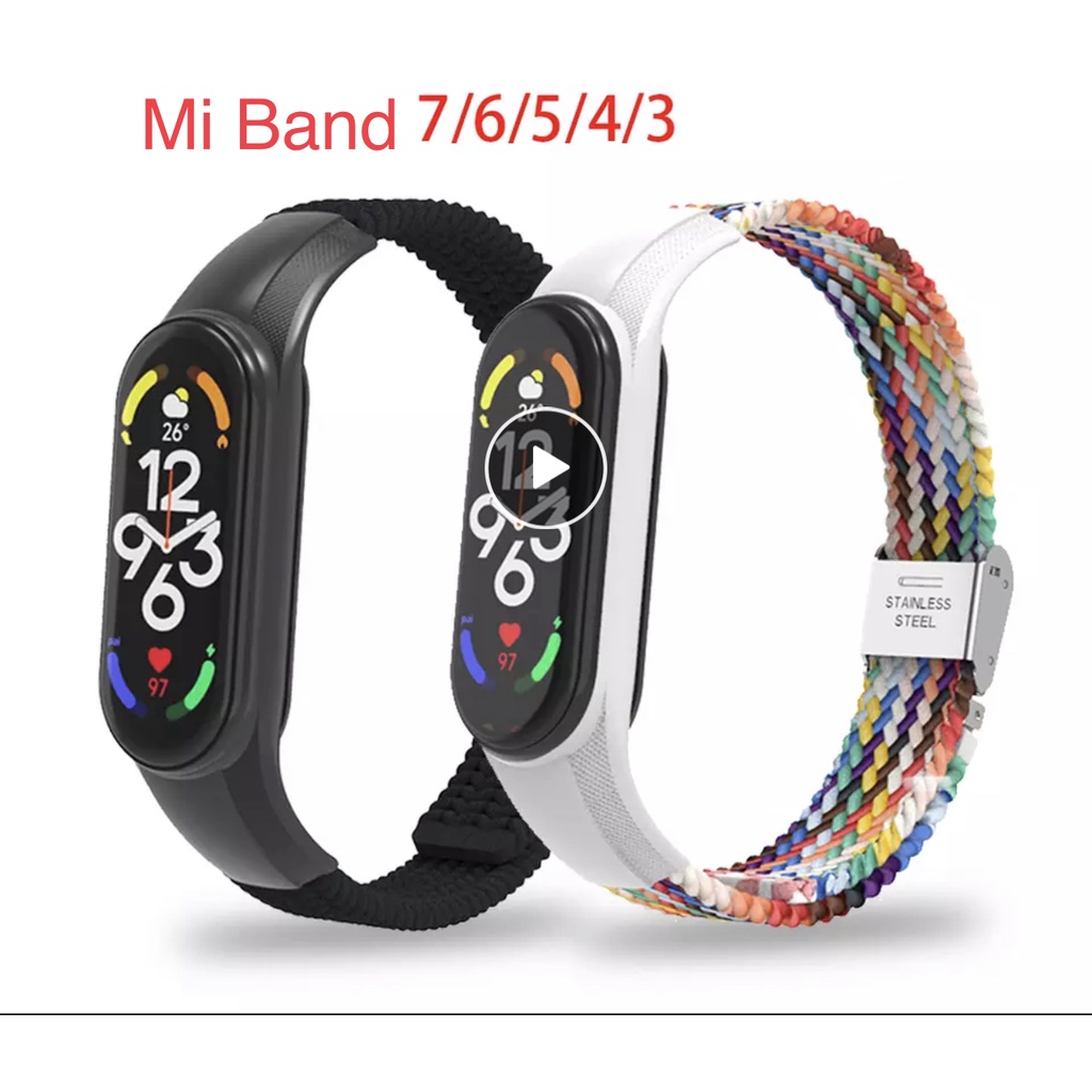 Pulseira para Mi Band 3 4 5 6 e 7 Pulseira de Nylon Trançada para MiBand Xiaomi com Fecho