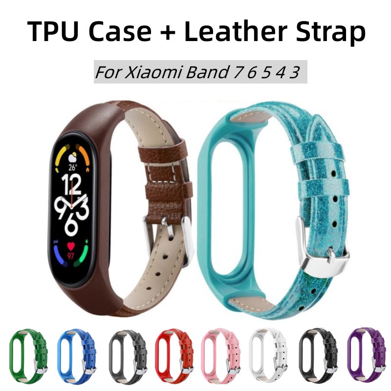 Pulseira Para Xiaomi Mi Band 7 6 5 4 3 De Couro PU Com Moldura De TPU Pulseiras Acessórios Inteligentes