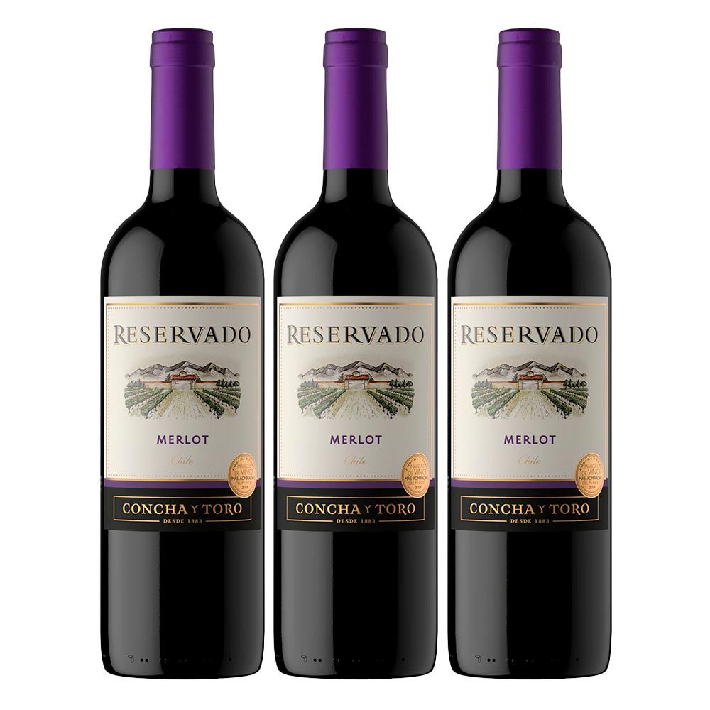 Kit Vinho Chileno Reservado Merlot - 3 Garrafas