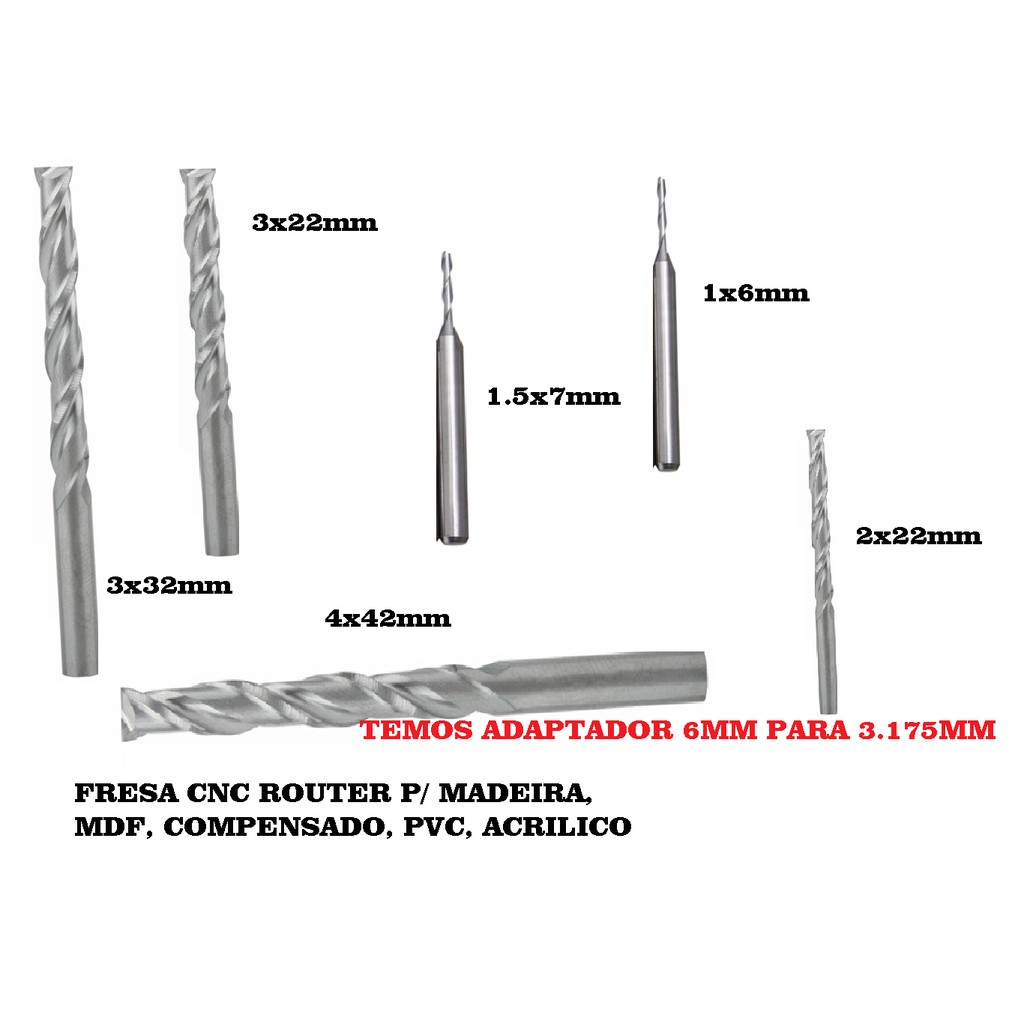 Fresa cnc router 2 Cortes Retos de 1 a 6mm a escolha!
